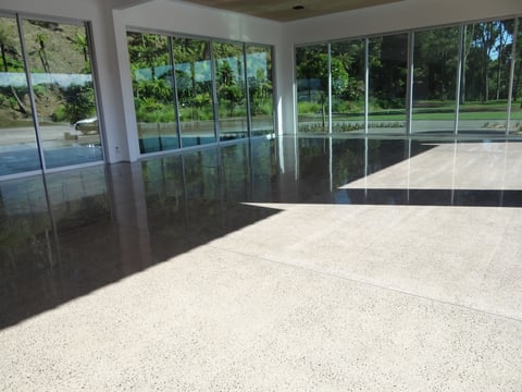 What's best - coated or polished concrete? Each have pros and cons. Coated concrete may scratch as it has a topical coating like a timber floor. Polished concrete is more durable and scratch resistance but may stain if spills are not removed.